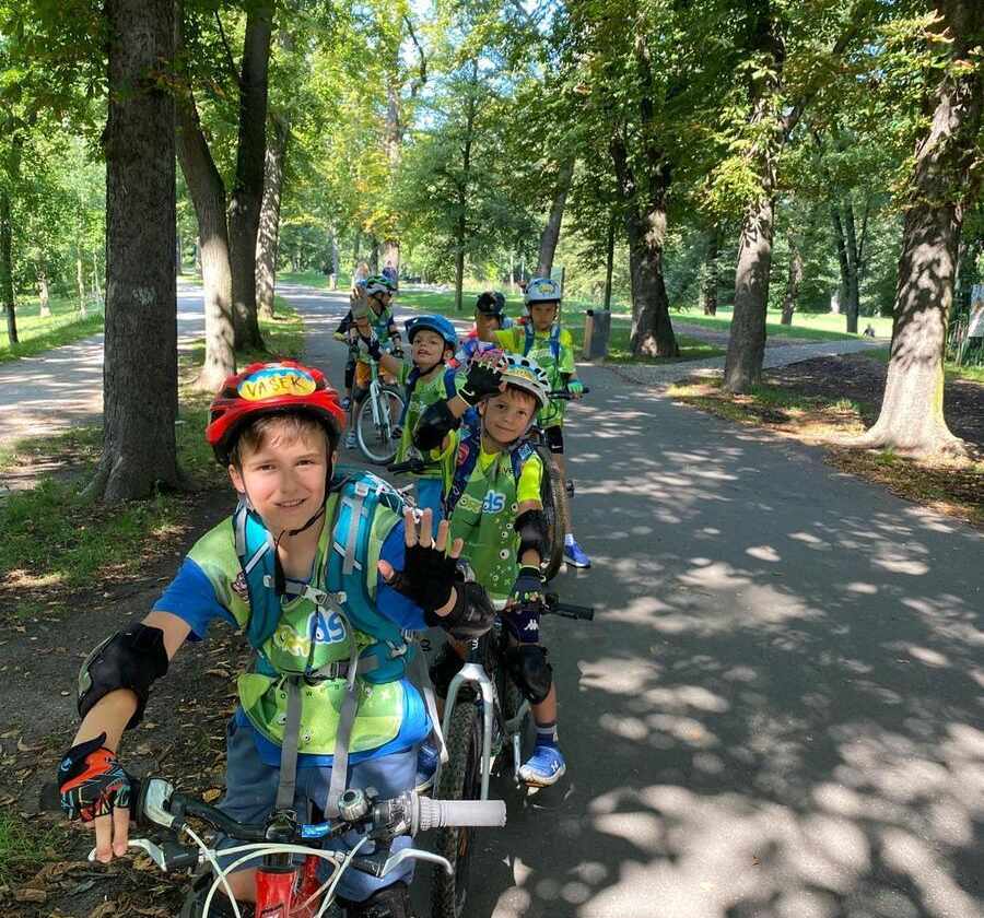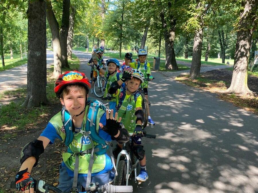 - Dopoledne se vždy věnujeme cyklistice, kde se zaměříme na bezpečnost a správnou techniku jízdy na kole.