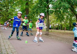 - Na in-line se děti naučí správně nosit ochranné pomůcky, ovládat techniku rozjezdu i zastavení, bezpečně padat, měnit směr jízdy a užít si jízdu na bruslích.