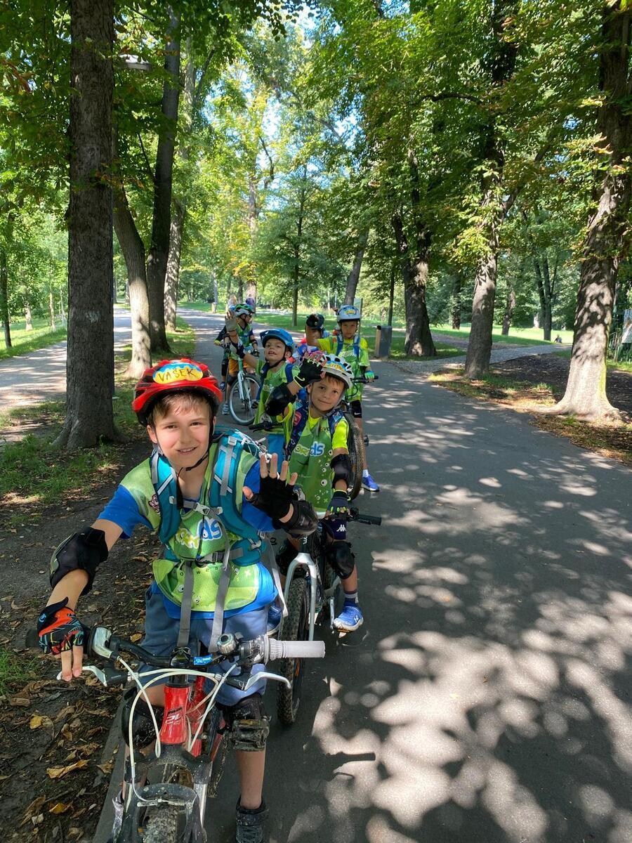 - Dopoledne se vždy věnujeme cyklistice, kde se zaměříme na bezpečnost a správnou techniku jízdy na kole.