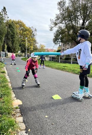 - Děti se naučí správně nosit ochranné pomůcky, ovládat techniku rozjezdu i zastavení, bezpečně padat, měnit směr jízdy a užít si jízdu na bruslích.