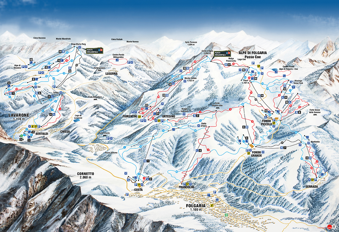 Alpe Cimbra je rozlehlá oblast v provincii Trentino, tvořená propojenými středisky Folgaria, Lavarone a Fiorentini, která dohromady nabízejí více než 100 km sjezdovek všech obtížností: