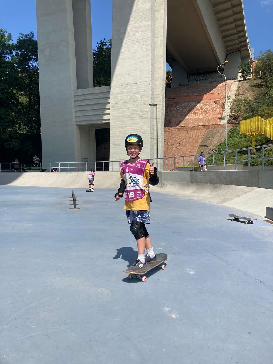 - Součástí výuky je i nácvik bezpečného pohybu v prostředí skateparku a respektování ostatních jezdců.